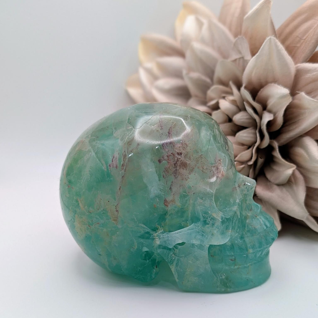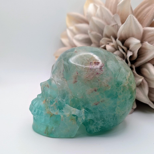 This skull measures approx. 4.5 inches from front to back, and is carved from Fluorite.